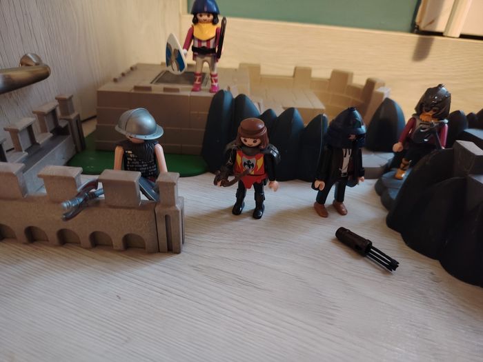 Lot chevaliers playmobil, vous y trouverez deux monts avec cache secretes et 6 figurines playmobil, le tout en très bon état pensez à regarder mes autres annonces