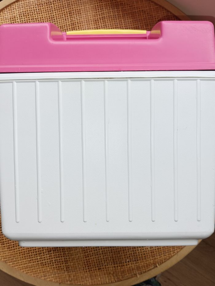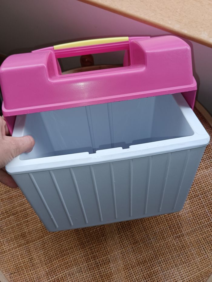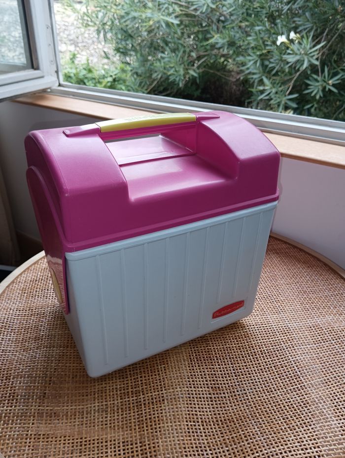 Glacière marque "Rubbermaid" Modèle USA 1922 Fonctionne correctement En très bon état. Quelques griffures voir photos. Revivez la nostalgie d'un style de vie rétro en plein air avec la glacière Rubbermaid Sidekick, modèle 1922. Arborant une teinte rose ludique, cette glacière vintage incarne le charme d'antan tout en offrant une solution pratique pour conserver vos boissons au frais. Fabriquée aux États-Unis, elle est fabriquée en plastique durable, ce qui lui garantit une résistance à l'épreuve du temps et des intempéries. Cette glacière compacte, mesurant 28,5 cm de haut, 26,7 cm de large et 20,3 cm de profondeur, a une capacité de 2 litres et peut contenir jusqu'à 6 canettes, ce qui la rend idéale pour les petits rassemblements ou les sorties en solo. Sa poignée intégrée la rend encore plus pratique, facilitant son transport vers votre lieu de pique-nique ou votre destination de plage.