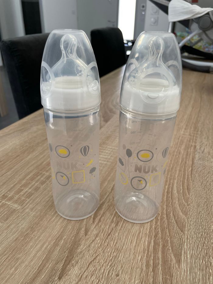 Vend deux biberons Nuk en plastique jamais servie juste laver
