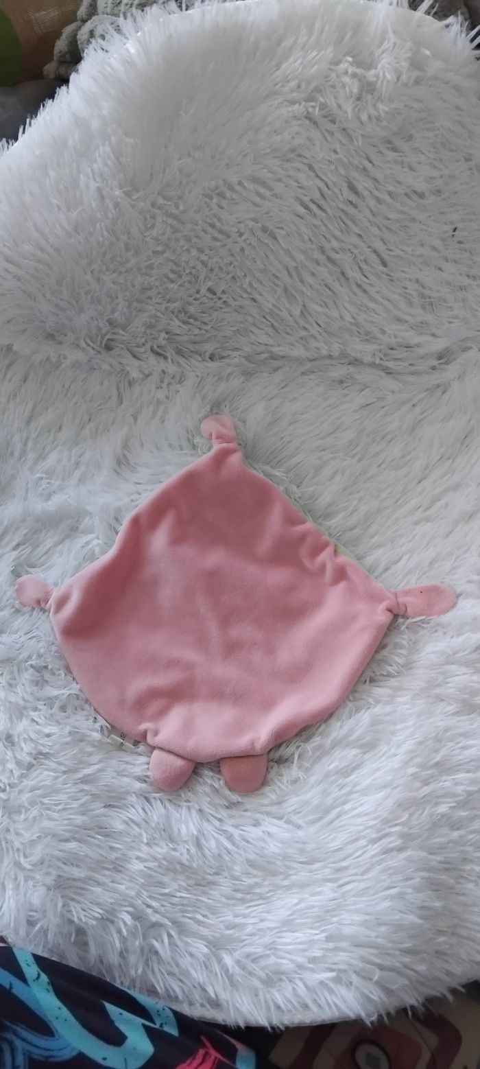 Doudou vert et rose plat poule blanche et vichy  - Nicotoy - photo numéro 2
