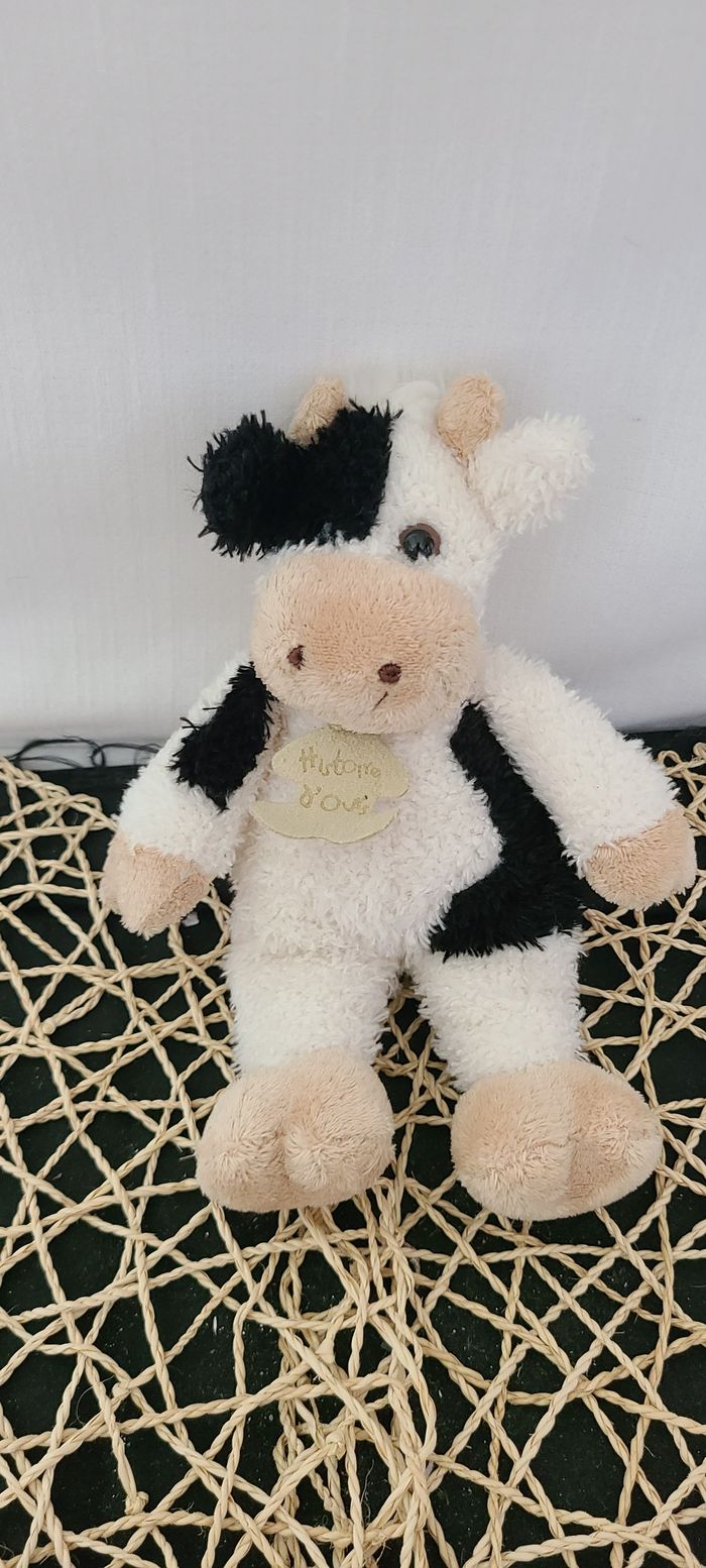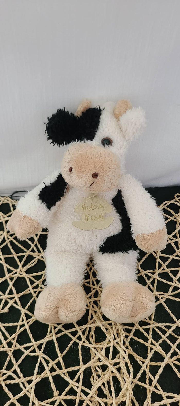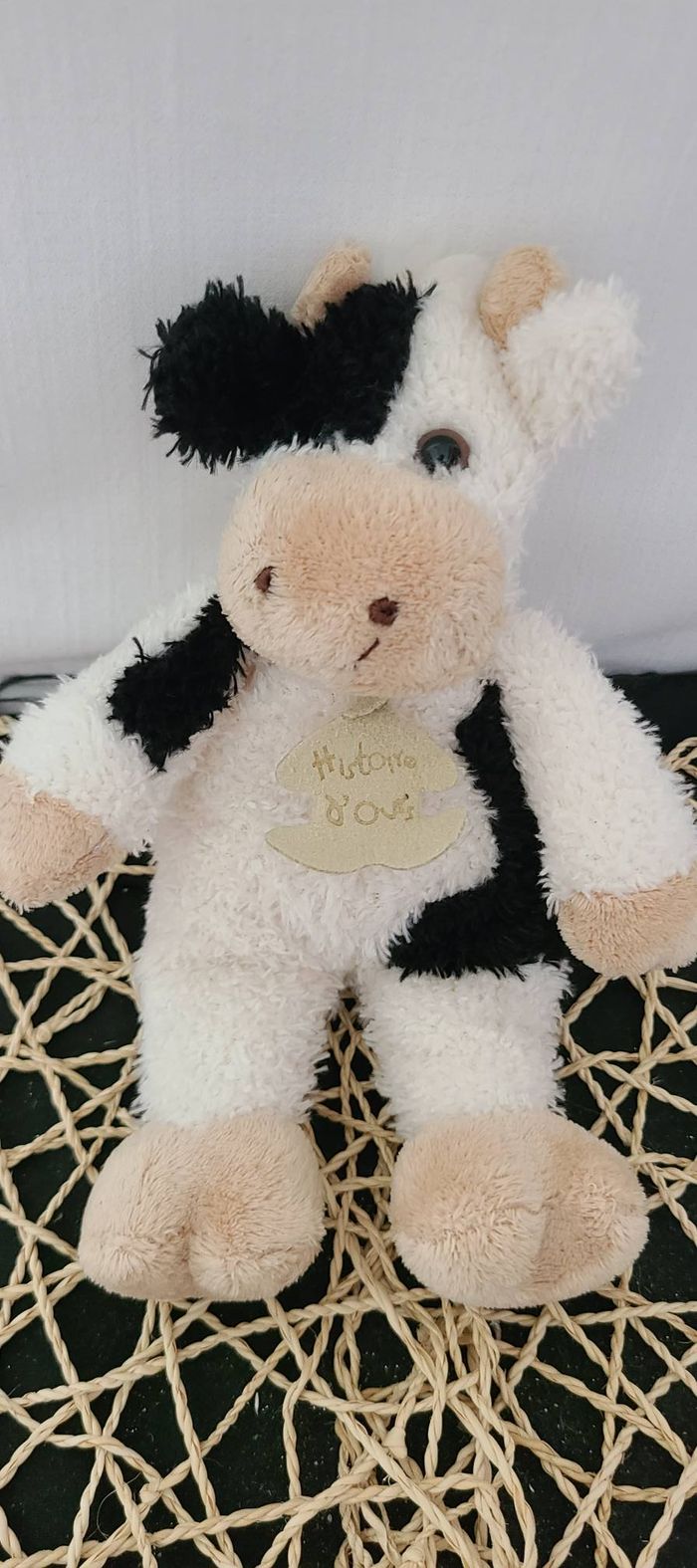 HISTOIRE D'OURS DOUDOU VACHE BLANC ET NOIR MUSEAU BEIGE
