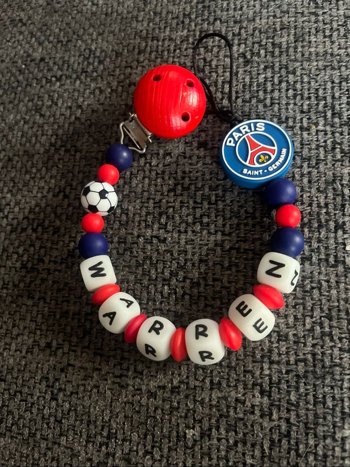 Attache tétine personnalisé en silicone ou en bois au souhait de l’acheteur . Personnalisable au choix de l’acheteur que ce soit la couleur comme le prénom ou le thème . Le fil est doublé pour plus de sécurité tout le long de l’attache tétine. N’hésitez pas à me demander et regarder mon dressing. Une photo vous sera envoyée avant l’expédition pour vous ayez un aperçu du rendu. Tous les produits sont réalisés avec du materiel spécial conçu aux bébés , enfants.