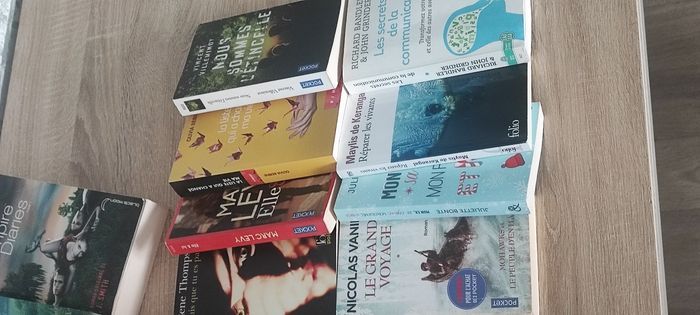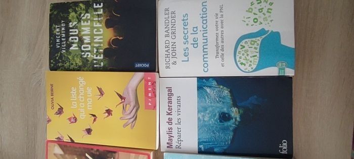 Lot de 7 livres de poche Karlen Thompson, depuis que tu es partie. Marc Levy Elle &lui Olivia Bierne, la liste qui a changé ma vie Vincent villeminot, nous sommes l'étincelle Nicolas Vanier, le grand voyage Maylis de Kerangal, réparer les vivants Richard Bandler & John Grinder, les sucrés de la communication