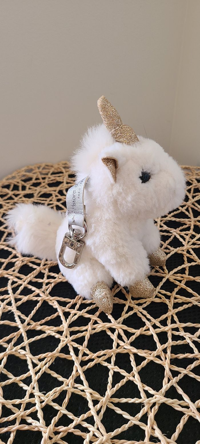 Porte Clés Peluche licorne HISTOIRE D'OURS blanc et or paillettes - photo numéro 1