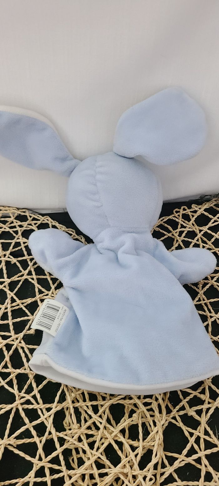 Doudou marionnette lapin MES PETITS CAILLOUX bleu - photo numéro 3