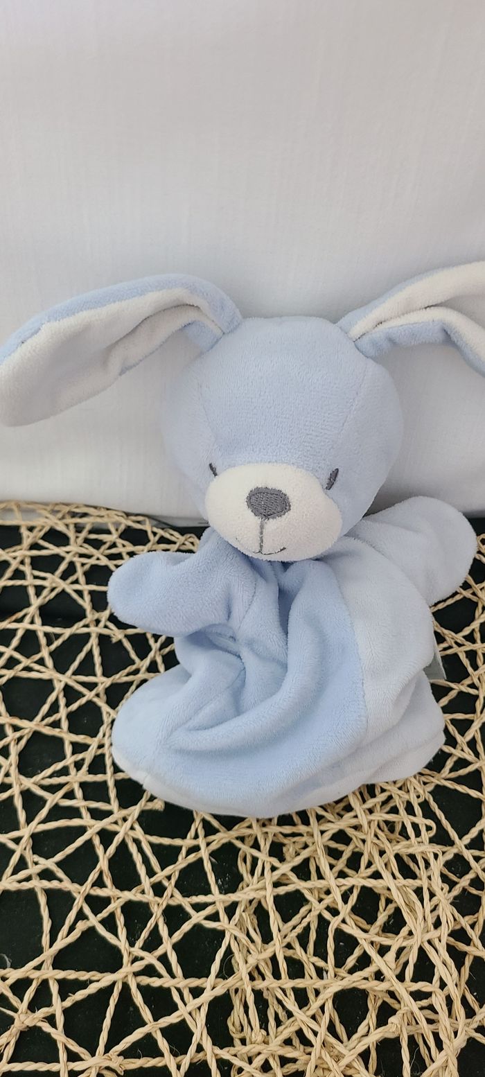 Doudou marionnette lapin MES PETITS CAILLOUX bleu - photo numéro 1