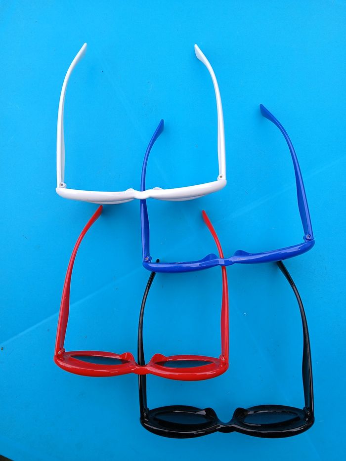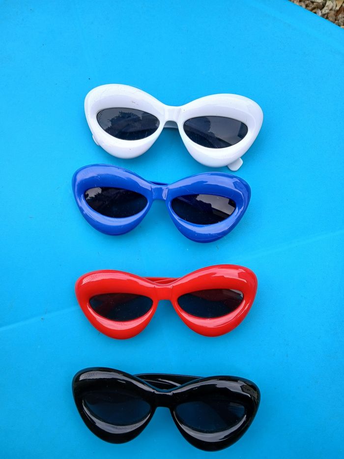 Lot de 4 paires de lunettes 🔹 État : Très bon 🔹 Couleur : multicolore 🔹 Pratique pour des fêtes ✅ Solide 📦 Envoi soigné.