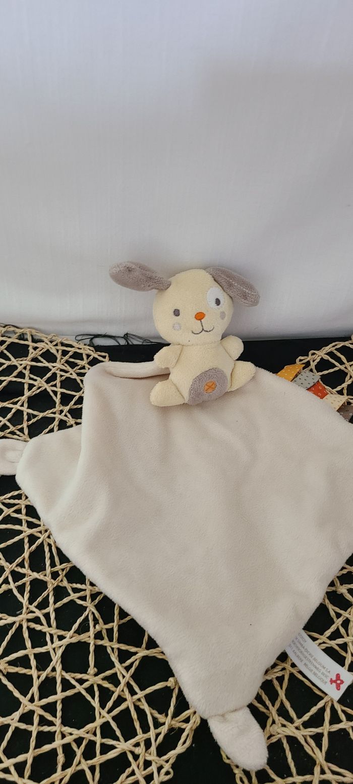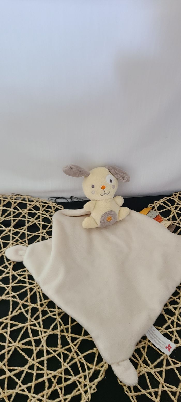 Doudou plat chien beige gris avec mouchoir NICOTOY - photo numéro 1