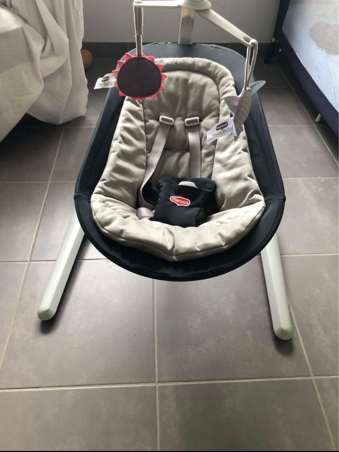 Transat Snab Sway & Bounce Tiny love Transat balancelle avec plusieurs options. Plusieurs musique, le bébé peut se balancer lui même grâce à ses mouvements ou par l’option vibration. Vendu démonté. Le transat offre à la fois des balancements apaisants et des balancements ludiques ainsi qu'un éveil musical avec 19 mélodies et 25 minutes de musique continue.