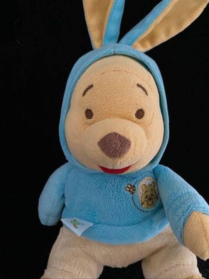❤️B5996 Doudou peluche Winnie l’ourson déguisé en lapin bleu jaune Disney Nicotoy - photo numéro 1