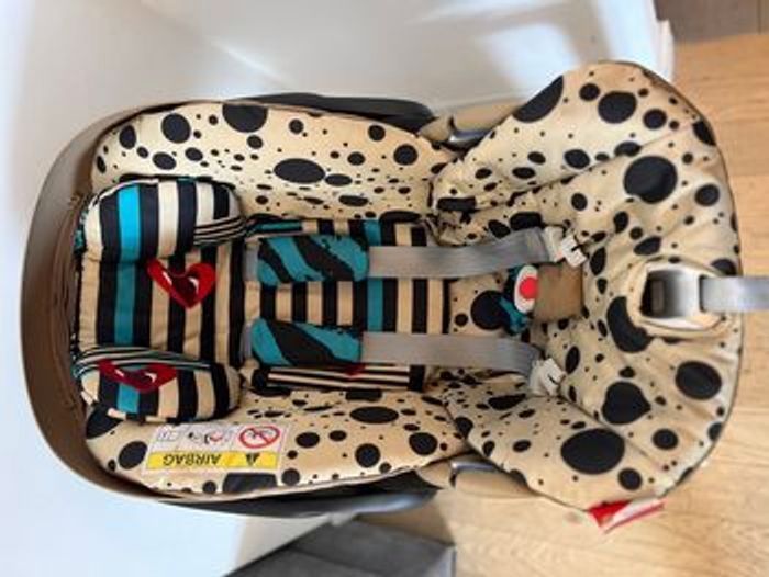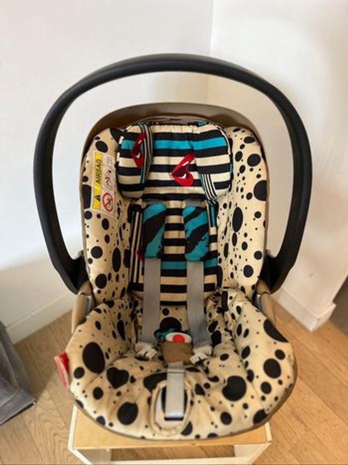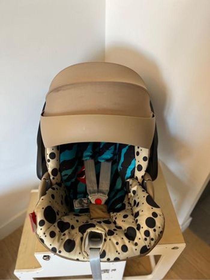 Siège auto cosy cybex x Karolina Kurkuva Très joli modèle pour se belles photos souvenirs Prix initial 370€ Spécifications : Âge : de la naissance à 24 mois environ Taille de l’enfant : 45 à 87 cm Poids de l’enfant : 13 kg max. Homologation : UN R129/03 Confort ergonomique, où que vous alliez