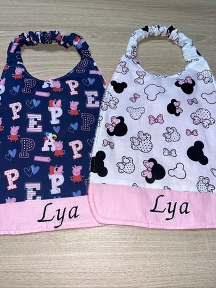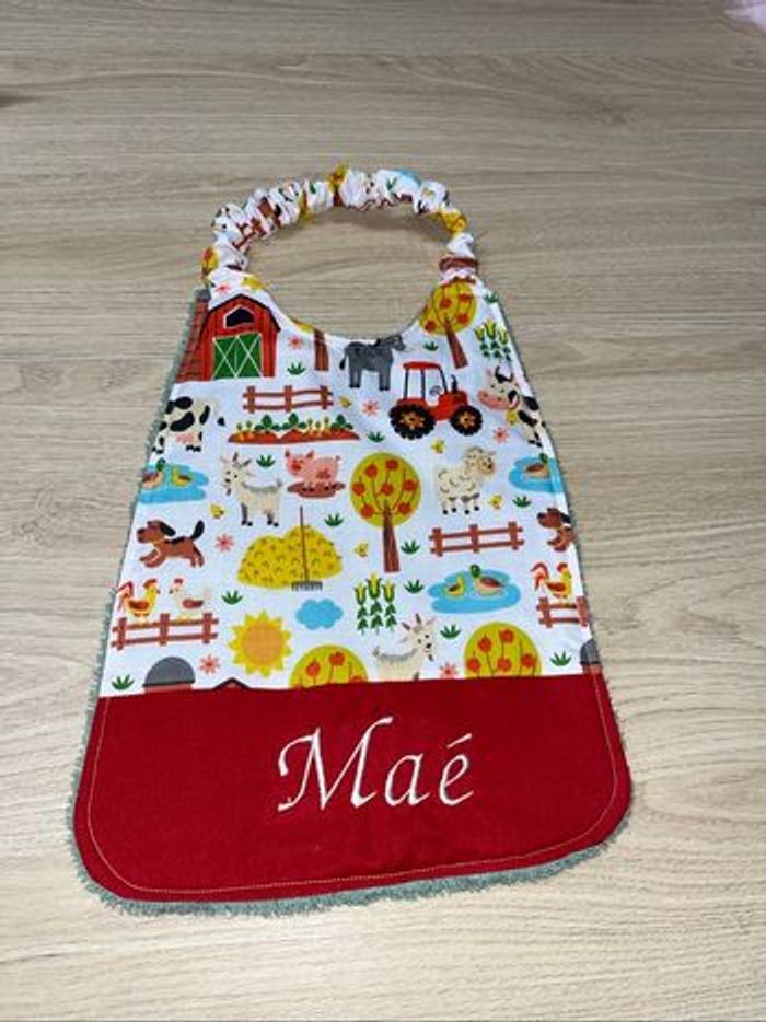 Bavoir avec élastique idéal pour la crèche la maternelle utilisable jusqu’à 6 ans voir plus Tissu au choix me demande Prix 6 euro sans prénom Prix 8 euro avec prénom brodé