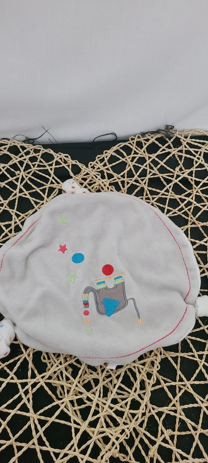 Doudou Gris Blanc Cirque Circus Rond Systeme U Ballons Etoiles vert bleu rouge jaune elephant - photo numéro 2