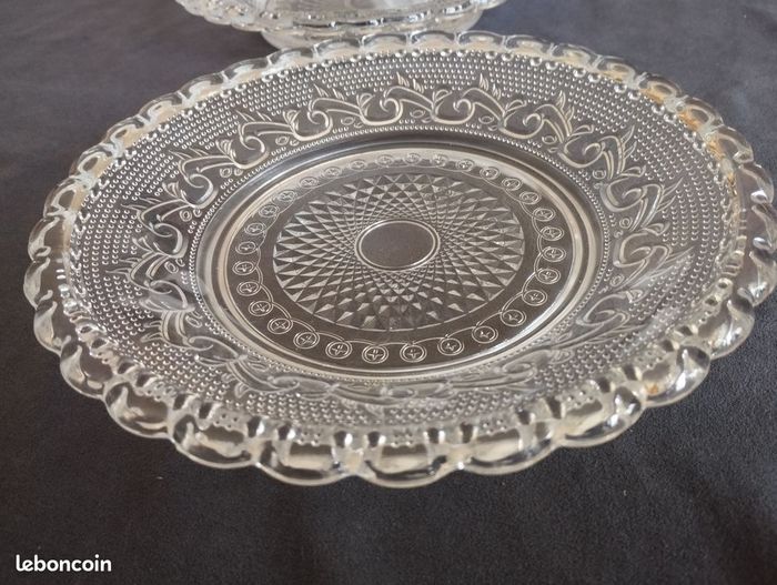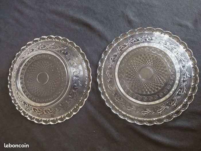 2 plats creux ou coupelles en verre relief ,vintage. Joli décor de table raffiné. 21cm de diamètre. Très bon état vintage.