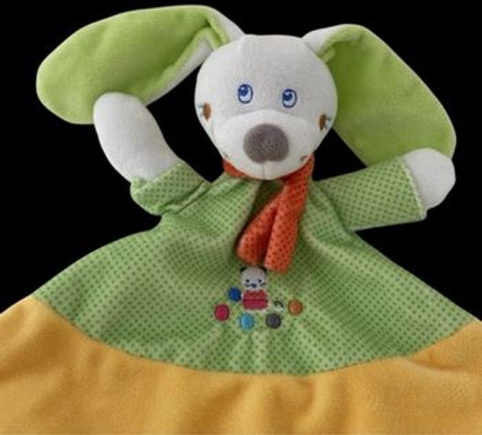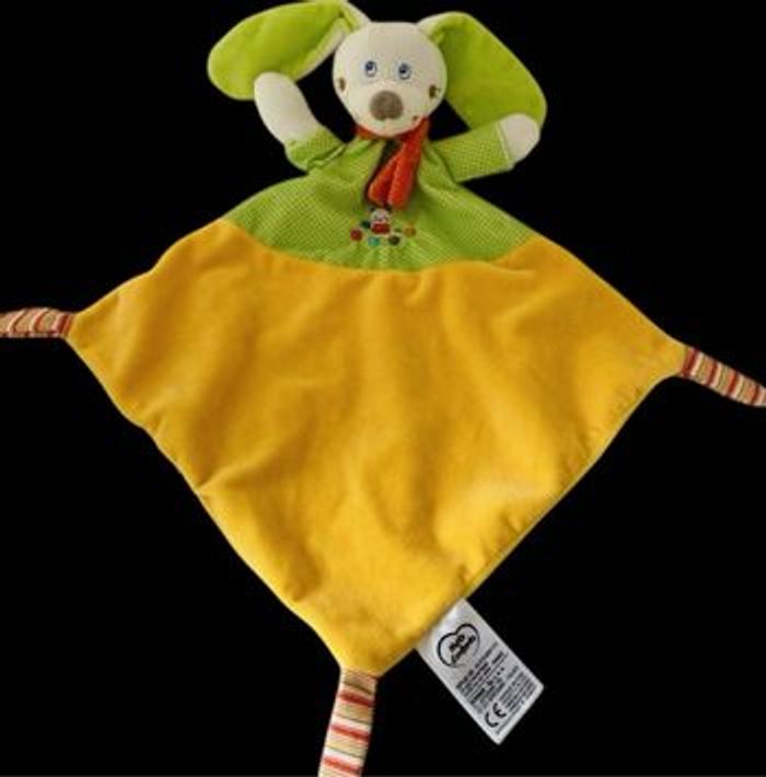 ❤️B5175 Doudou plat Mouchoir Chien Lapin Chat MOTS D'ENFANTS Vert Jaune