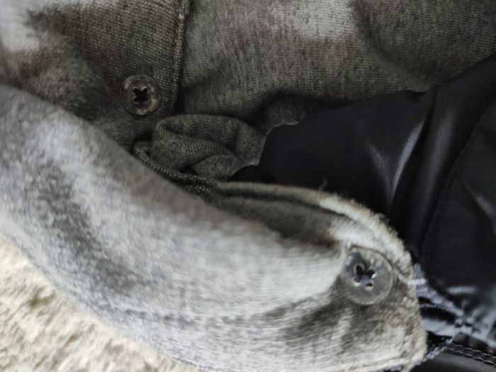 Il y a une étiquette avec le nom de mon fils Capuche amovible (avec des boutons : cf. photo)