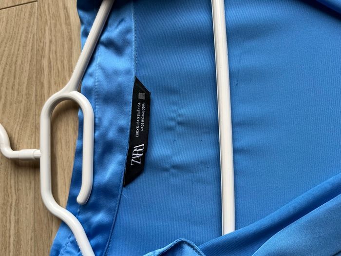 Vend chemise en satin. Vient de chez Zara. Couleur : bleu. Taille : XS. Très bon état jamais porté. Pour plus de détails venez prv.
