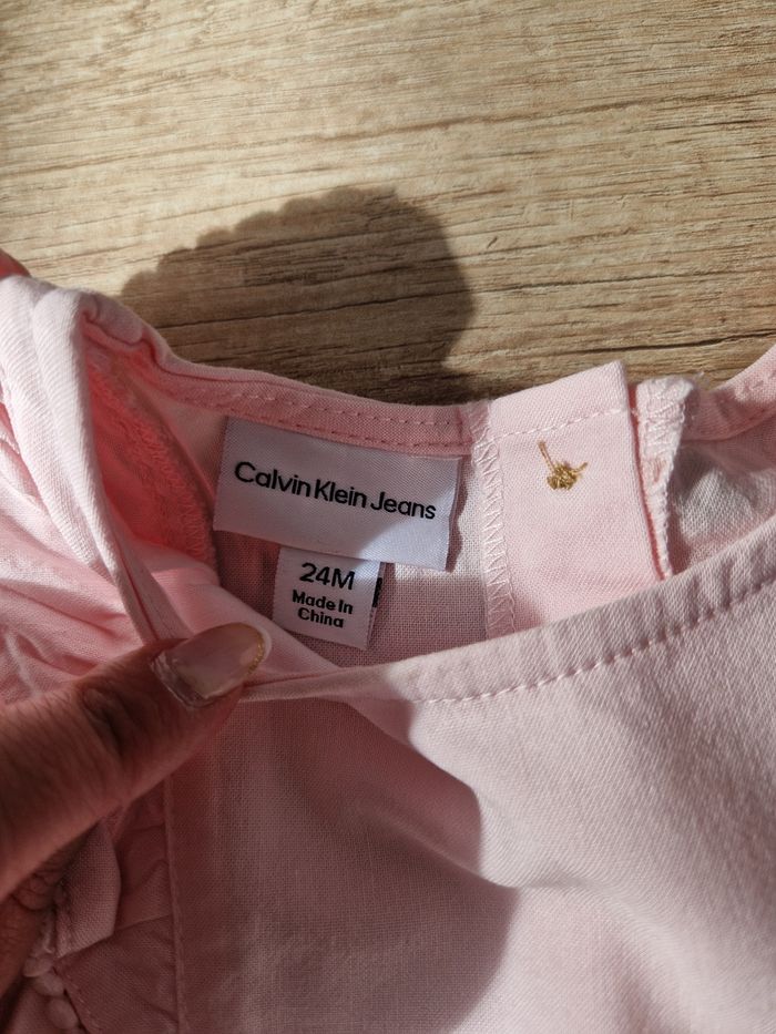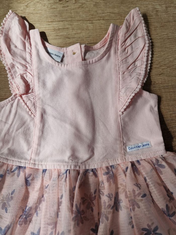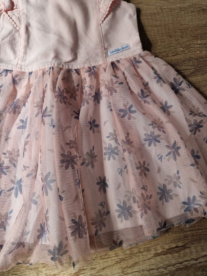 Magnifique robe Calvin klein jeans rose 2 ans, manches courtes se boutonne a l'arrière dans le dos, le bas de la robe et en tulle. Mise 1 fois
