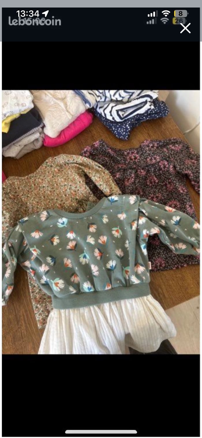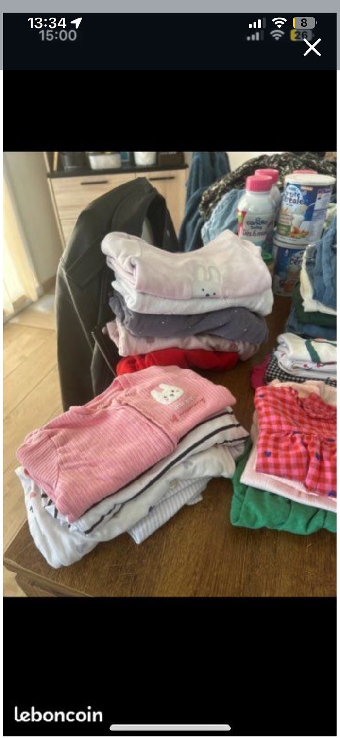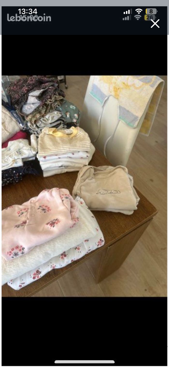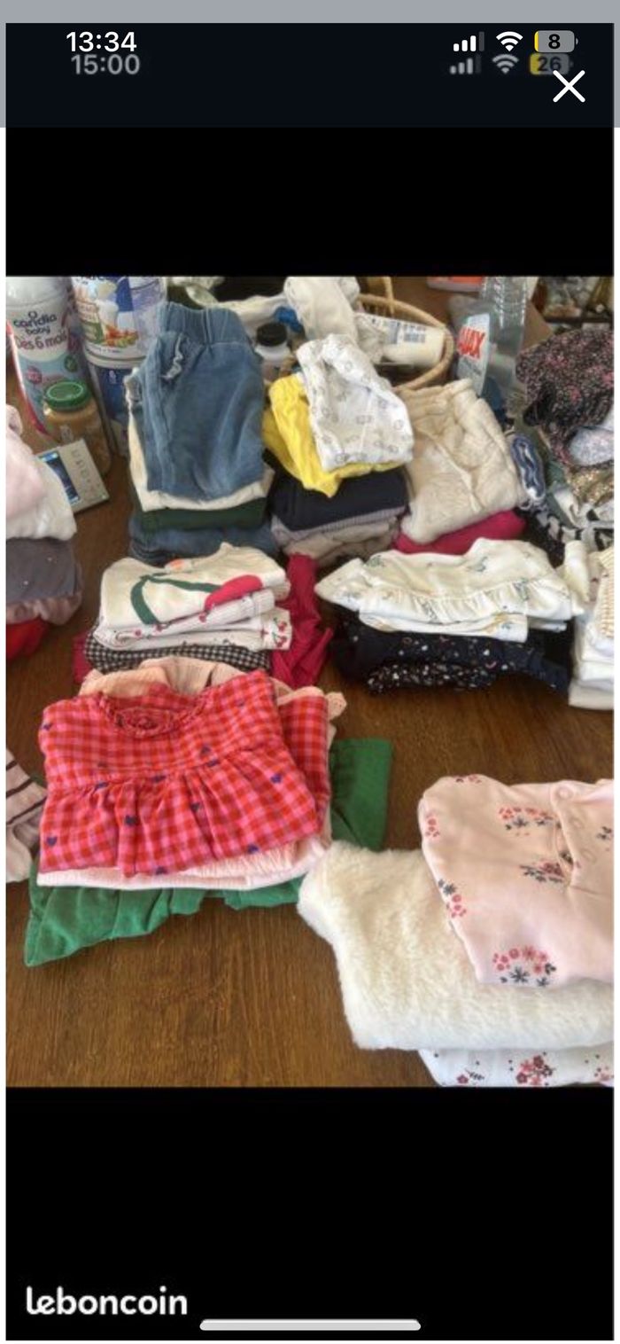 Je vends un gros lot de vêtements bébé fille – taille 6 mois, parfait pour habiller votre petite sans vous ruiner ! 🧺 Environ 60 pièces en très bon état (certains comme neufs), lavés avec lessive bébé. 🌸 Le lot contient : • Bodies manches longues & courtes • Pyjamas / dors-bien • Pantalons, leggings • Robes • Hauts / pulls • Shorts • Bandeaux • Accessoires Tout est prêt à porter, aucun vêtement abîmé. 💖 Marque variées : Kiabi, Sergent Major, Orchestra, Petit Bateau, etc.