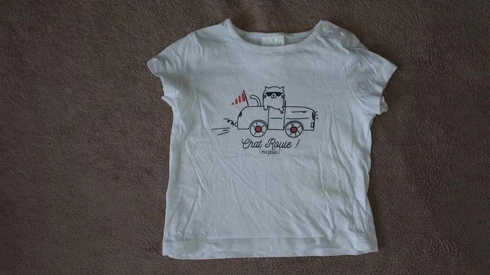 Ensemble assorti Kiabi - t-shirt manches courtes "Chat Roule! (ma poule)" - salopette short gris et vert "ça roule" pressions à lentrejambe #virgy61garcon9mois