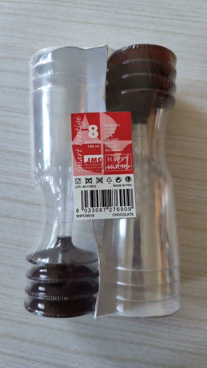 Bonjour Je vends 🌱 Un lot de 8 flûtes à champagne 🌱 En plastique 🌱 Toute neuve 🌱 Couleur transparent et marron 🌱 180 ml