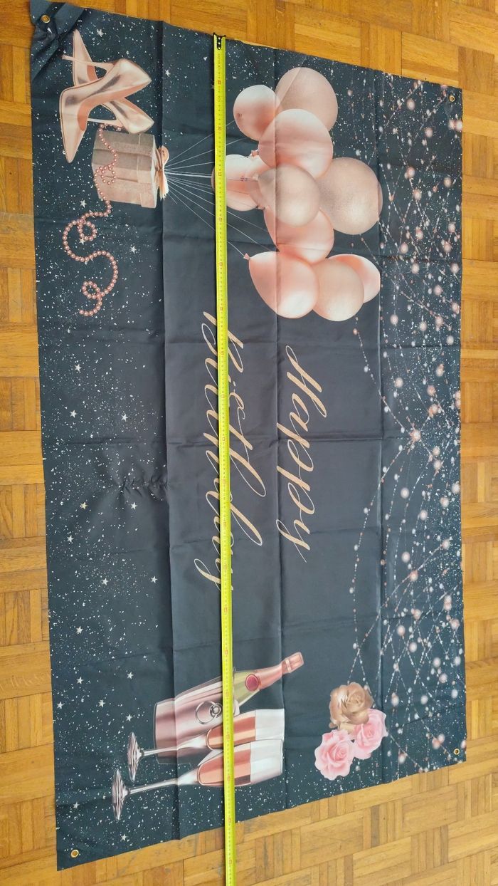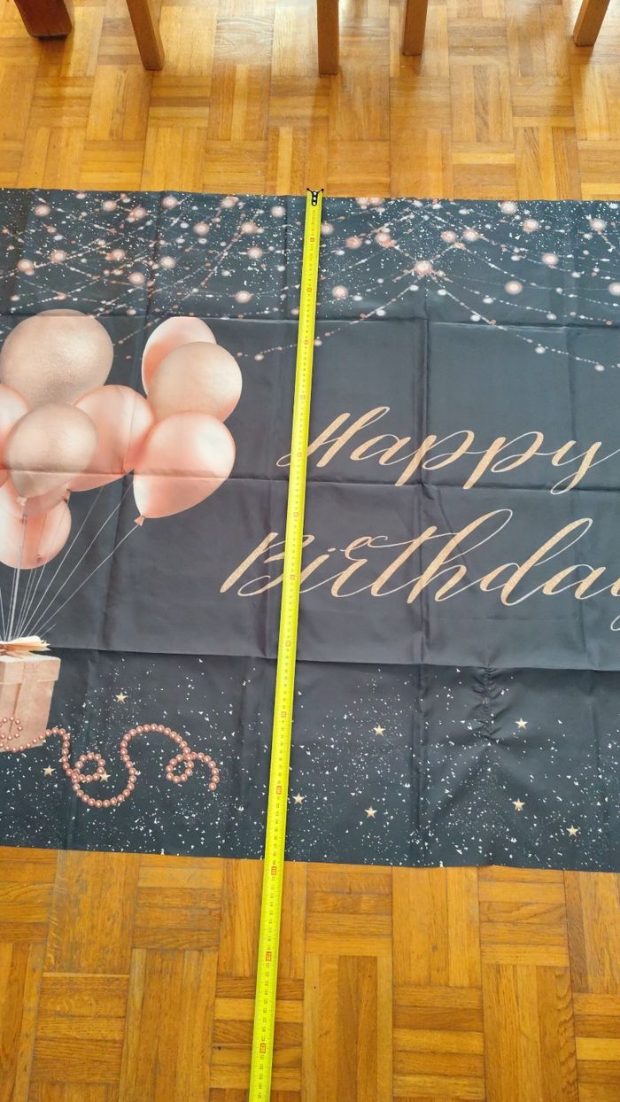 Bonjour Je vends une décoration d'anniversaire: 🥳Drapeau style affiche en 🥳 Matière en tissu 🥳 écrit Happy birthday 🥳En bon état 🟠 Défauts: tissu un peu abîmé ( voir les deux dernières photos) 🥳 Mesurations: 👉 Longueur : 181.3 cm 👉 Hauteur : 108.7 cm