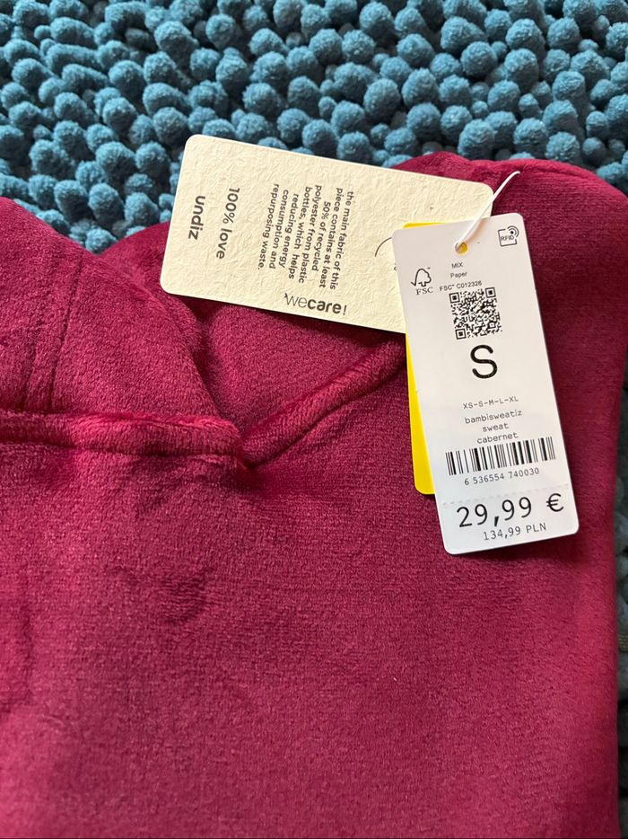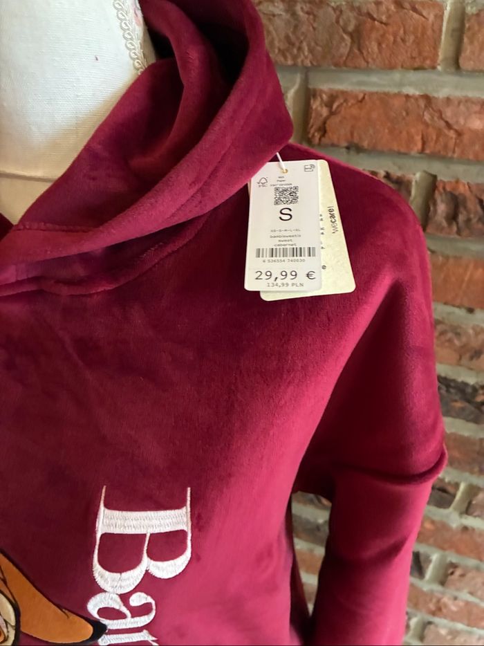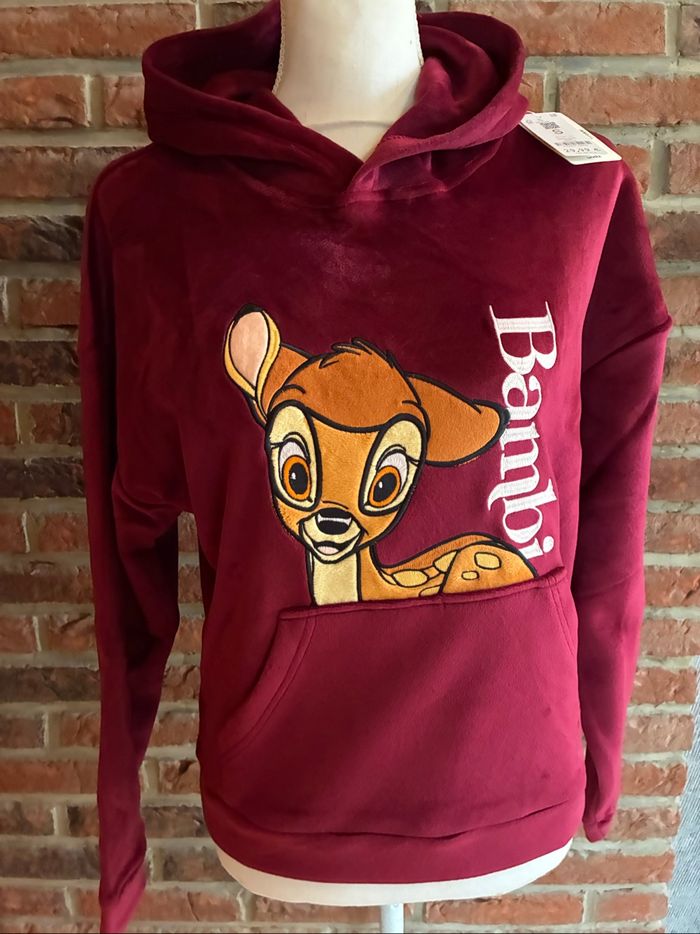 Pull sweat à capuche bambi Disney undiz Neuf avec étiquette Taille s Bordeaux en matière toute douce