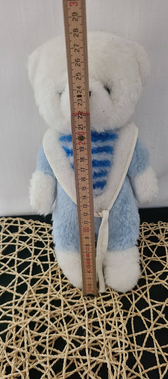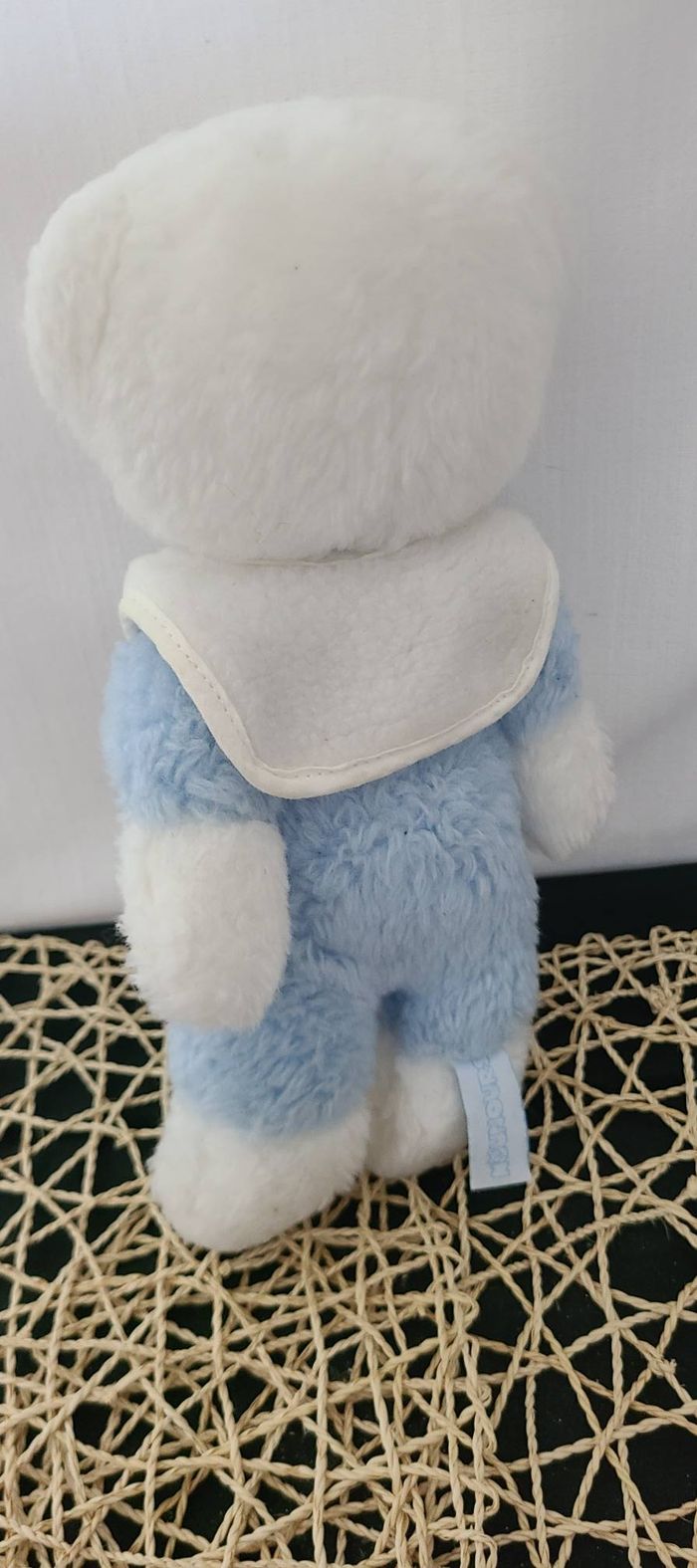 doudou peluche ours bleu blanc rayé bleu NOUNOURS vintage - photo numéro 5