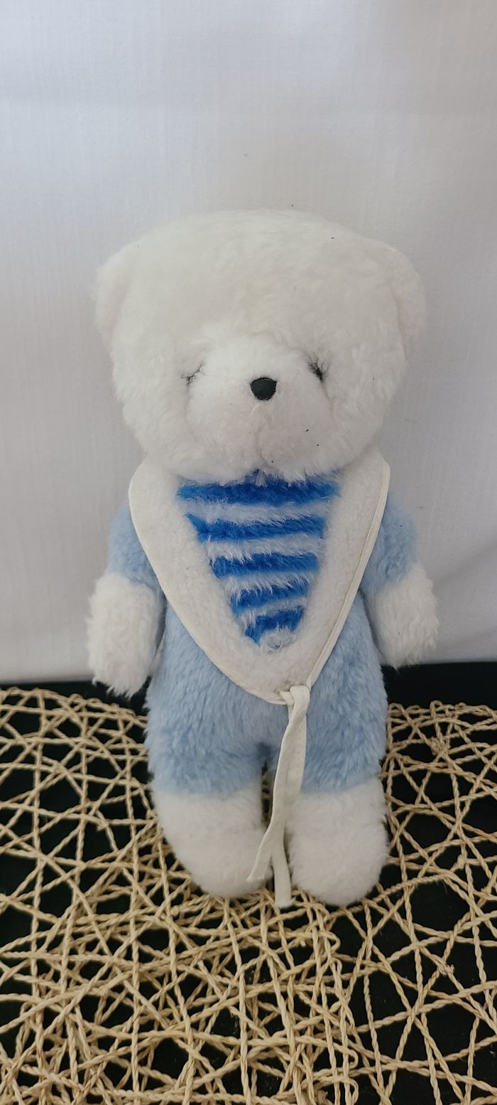 doudou peluche ours bleu blanc rayé bleu NOUNOURS vintage - photo numéro 1