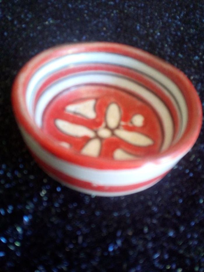 ramequin rouge et blanc fabriqué en ITALIE mesures 4 cms de hauteur sur 8 cms de diamètre voir toutes mes annonces en tapant kiki60230 dans le moteur de recherche