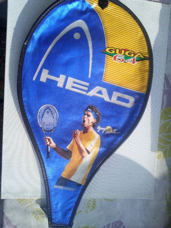 housse de raquette marque HEAD c'est écrit GUGA 64 mesures 50 cms de hauteur sur 27 cms de largeur voir toutes mes annonces en tapant kiki60230 dans le moteur de recherche