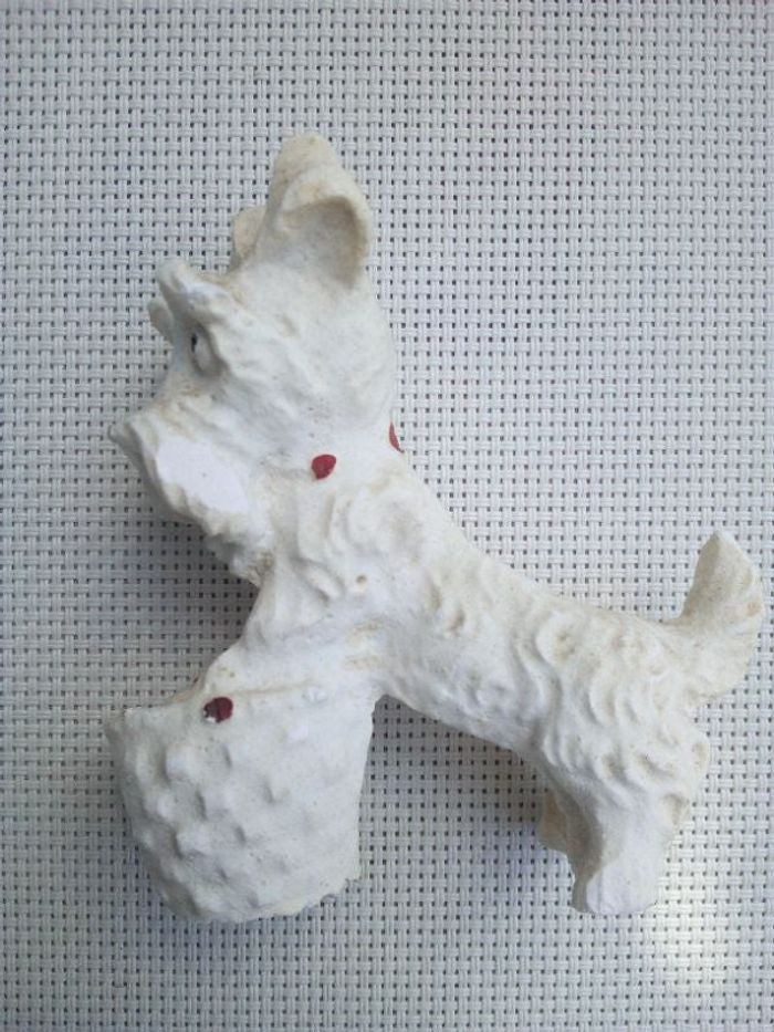 figurine chien en matière comme du platre mesures 10 cms de hauteur sur 10 cms de largeur voir toutes mes annonces en tapant kiki60230 dans le moteur de recherche
