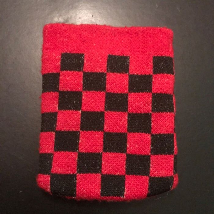 Housse de protection en laine rouge et noir à damiers Mesures 10 cms de hauteur sur 8 cms de largeur Voir toutes mes annonces en tapant kiki60230 dans le moteur de recherche