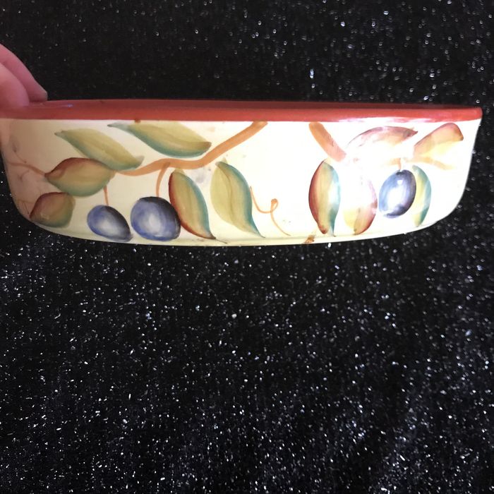 plat décor olive en grès - mesures - 22 cms de hauteur sur 13 cms de largeur - voir toutes mes annonces en tapant kiki60230 dans le moteur de recherche