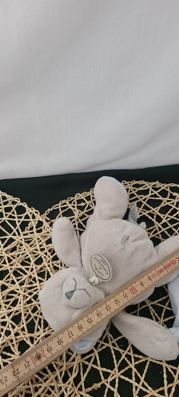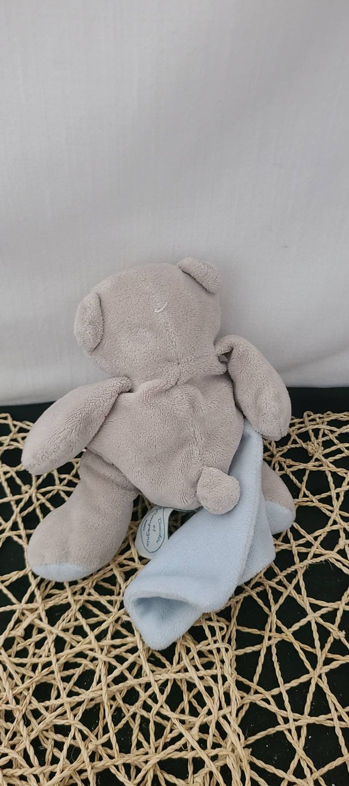 DOUDOU ET COMPAGNIE PELUCHE OURS GRIS BEIGE MOUCHOIR BLEU BILLES - photo numéro 3