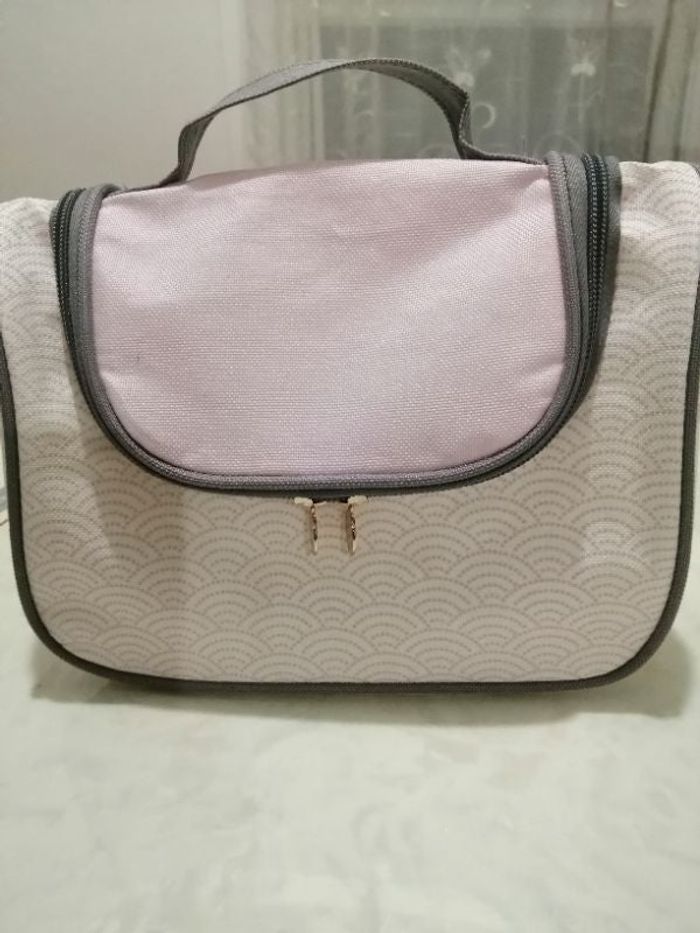 Joli petit vanity rose pâle, blanc et gris. Neuf.