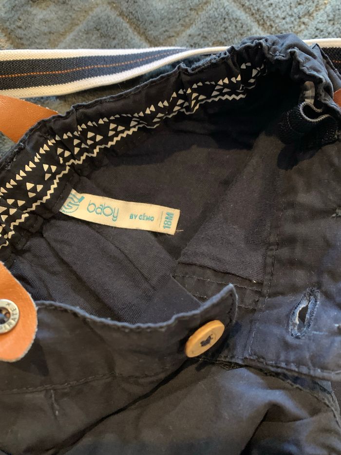 Matière légère Bretelles amovibles, réglage possible pour serrer la taille avec système élastique et boutons 2 boutons de rechanges cousus sur l’étiquette De la marque Gémo, taille 18 mois Articles à 1€: 10 pour le prix de 8!!
