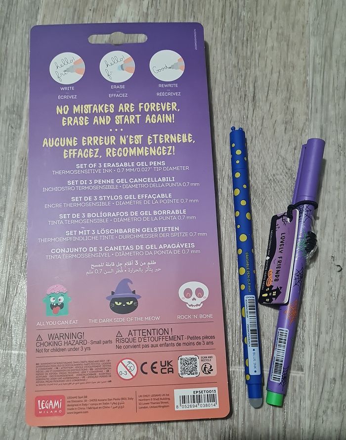 1 Stylo LEGAMI Lovely Friends → Collection HALLOWEEN 2025 : NEUF Araignée 🕷️🕸️"Free Hugs" 1 SET de 3 Stylos LEGAMI effaçables → Collection HALLOWEEN 2025 : NEUFS Chat Noir + Squelette + Zombie 1 Stylo LEGAMI Monstre Neufs Jamais Utilisés Authentiques Collectionneurs : nous avons à vendre (pas encore en ligne) toutes les éditions Legami effaçables qui existent depuis leur création en 2022, nous pourrons composer ensemble votre lot sur mesure adapté à vos besoins 🌞