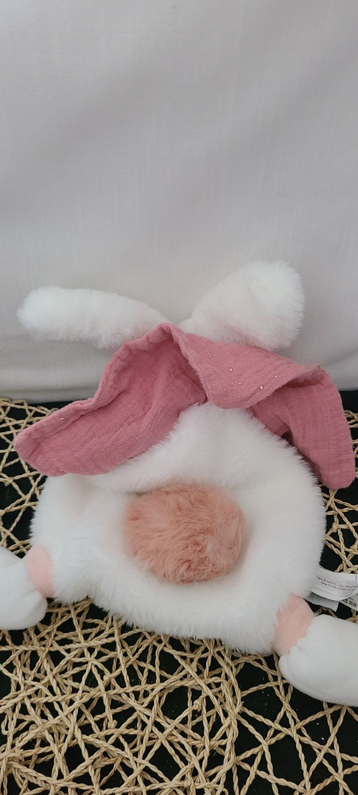 DOUDOU ET COMPAGNIE Plat Mouchoir Lapin Blanc Vieux Rose Happy Boho