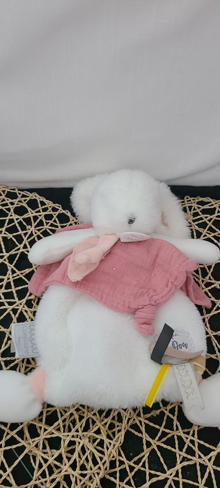 DOUDOU ET COMPAGNIE Plat Mouchoir Lapin Blanc Vieux Rose Happy Boho - photo numéro 1