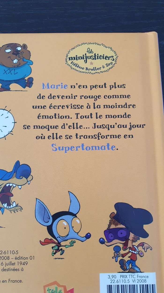 Je vends ce livre pour enfants "Supertomate" de la collection Minijusticiers - Titre : Supertomate - Genre : Livre pour enfant & adolescent - Éditeur : Minipoiliers Très bon état N'hésitez pas à me contacter pour plus d'informations !