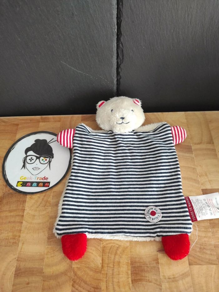 Ours Terre De Marins Blanc Bleu Rouge  doudou plat mouchoir rayé rayure marron beige - photo numéro 1