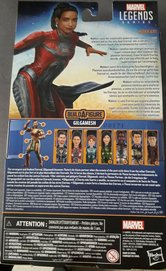 Makkari Eternals Marvel Legends Séries Hasbro plus de 4 ans Makkari canalise son énergie cosmique en super-vitesse pour aller explorer des planètes lointaines. Etant la seule Eternal sourde, elle n'est pas affectée par le bang supersonique qui l'accompagne.