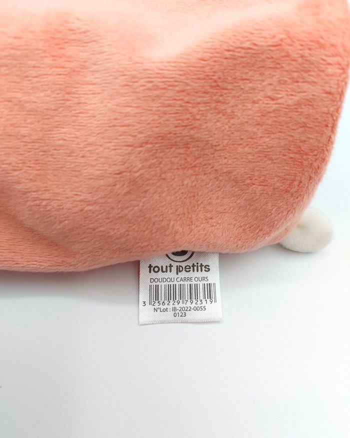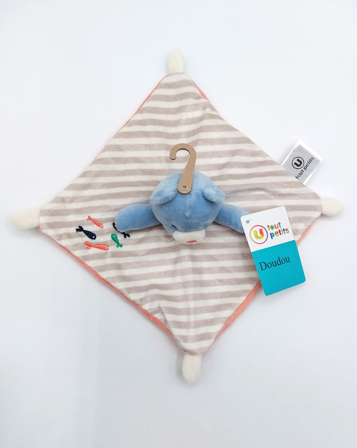 Doudou plat carré ours bleu Super U Tout petits gris blanc rose saumon poissons - photo numéro 4