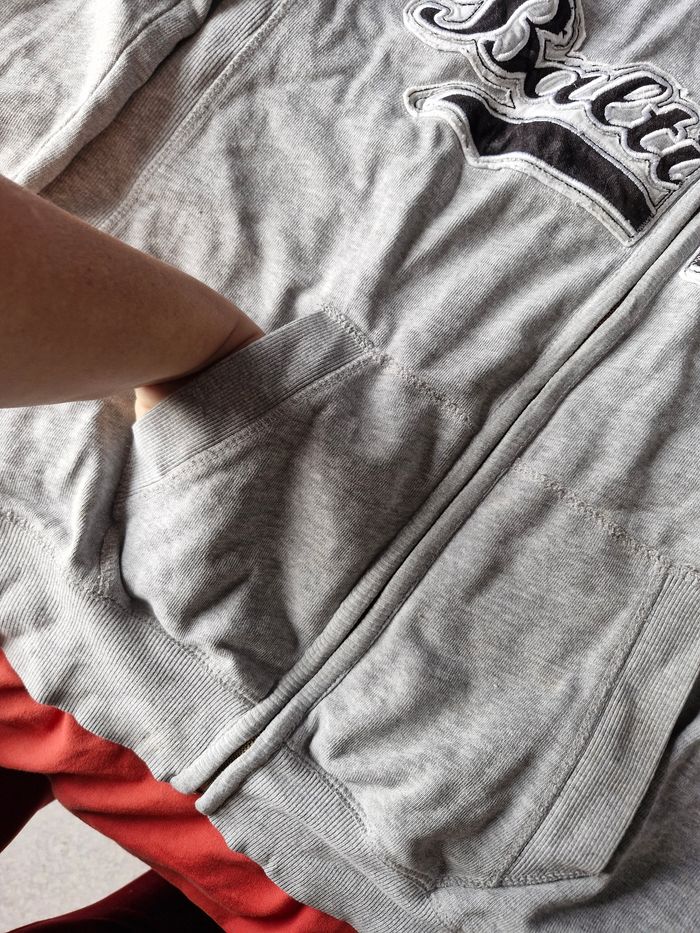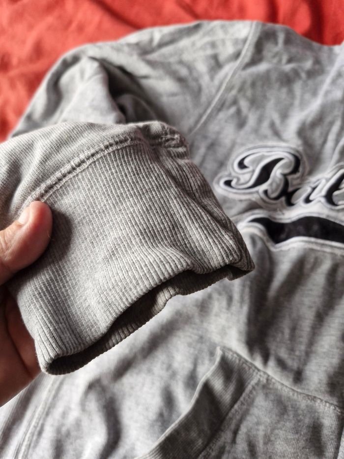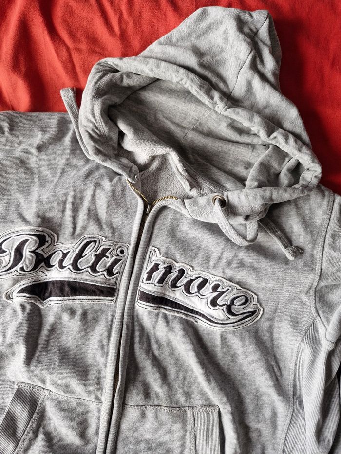 Très jolie veste manches longues Capuche avec lien a serrer Fermeture devant par zip 2 Poches ventrales placées sous l'impression poitrine Baltimore 🏷 taille L 📌 Mesures sur tissu extensible Aisselles de 60cms à plat à 69cms en tirant Hauteur 65cms Je n'ai pas remarqué d'anomalie a part l'étiquette décousue (vu sur photo) N'hésitez pas a créer un lot pour profiter des réductions actives dès 2 articles #naya59199veste #naya59199hommetaillel #naya59199vestehomme #naya59199homme