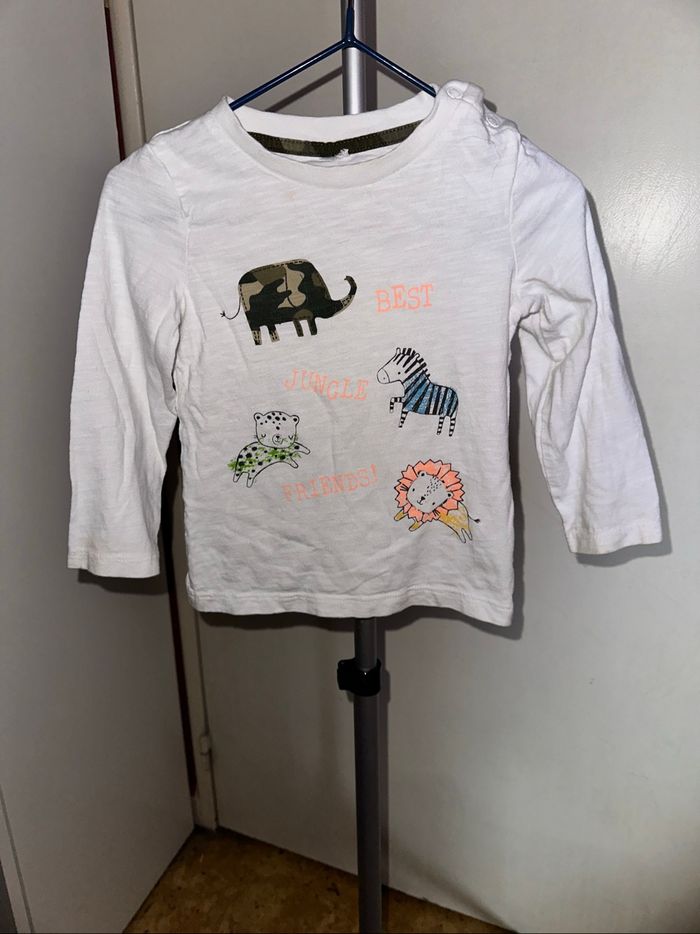 T shirt manche longue 12/18 mois, parfait état, marque c&a #18moiskay57070 #prixrond #tresbonetat #18moisgarcon #garcon18mois #lion #tshirtlancheslongue #c&a #zèbre #éléphant #animaux