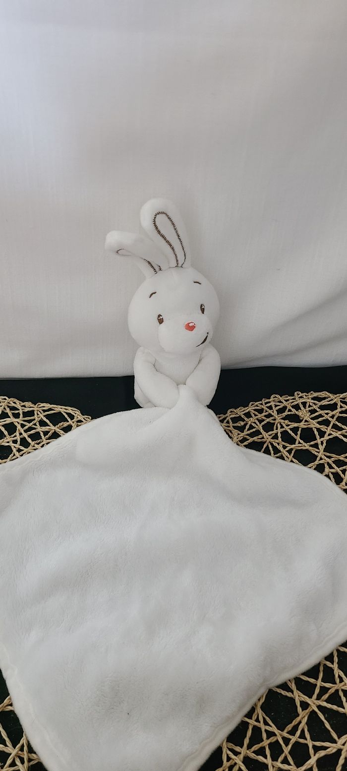 Lapin AUCHAN doudou peluche blanc - photo numéro 1