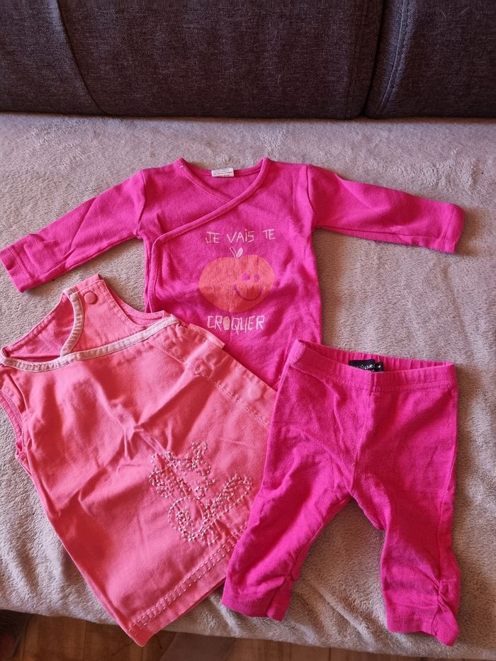Robe, body et petit pantalon rose 3 mois