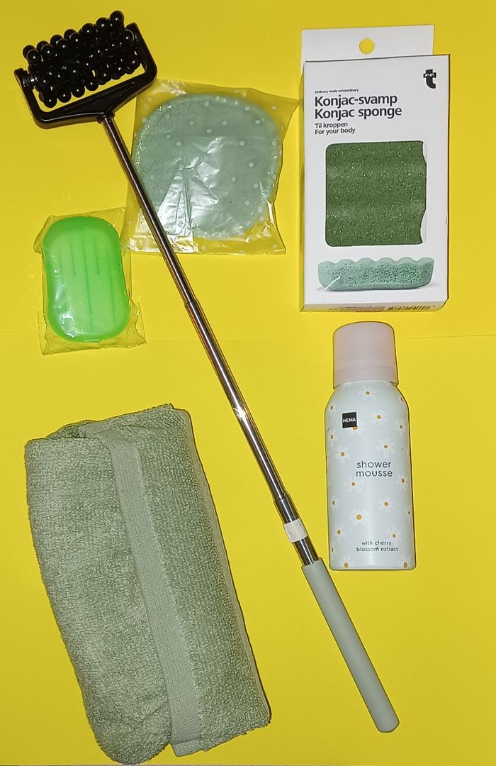 Mousse de douche Serviette visage Masseur télescopique Coton lavable Pétales de savon pour les mains ( boite verte) Eponge konjac pour le corps