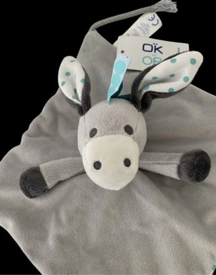 ❤️B4828 Doudou Plat Mouchoir Ane Âne Gris Blanc Pois Bleu OBAIBI Okaïdi - photo numéro 1